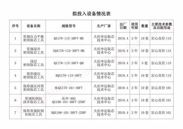 擬投入設(shè)備情況